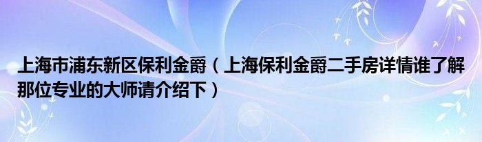 上海市浦东新区保利金爵(上海保利金爵二手房详情谁了解那位专业的大师请介绍下)