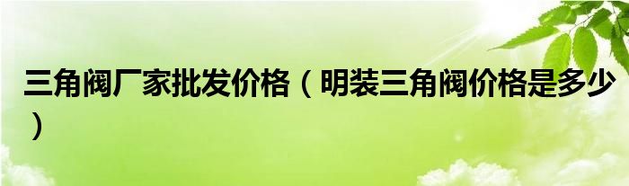 大家好,精选小编来为大家解答以上的问题。三角阀厂家批发价格,明装三角阀价格是多少很多人还不知道,现在让我们一起来看看吧!