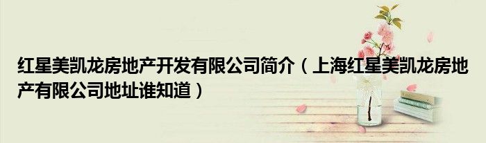 导读 大家好,精选小编来为大家解答以上的问题。红星美凯龙房地产开发有限公司简介,上海红星美凯龙房地产有限公司地址谁知道很多人还不知道,现