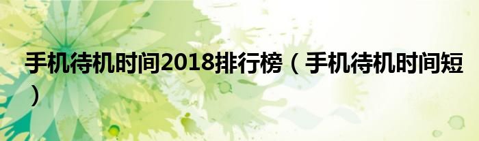 大家好,麟非来为大家解答以上问题,手机待机时间2018排行榜,手机待机时间短很多人还不知道,现在让我们一起来看看吧!
