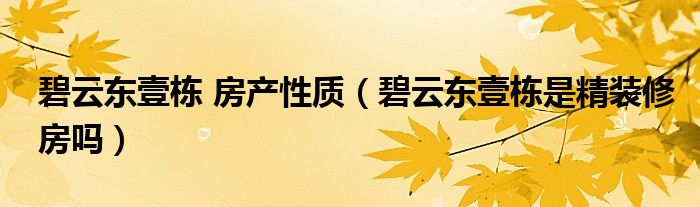 碧云东壹栋 房产性质(碧云东壹栋是精装修房吗)