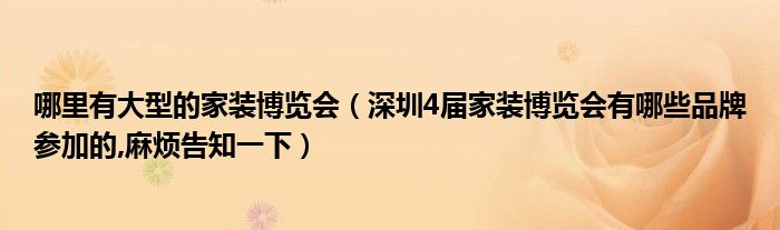 哪里有大型的家装博览会(深圳4届家装博览会有哪些品牌参加的,麻烦告知一下)