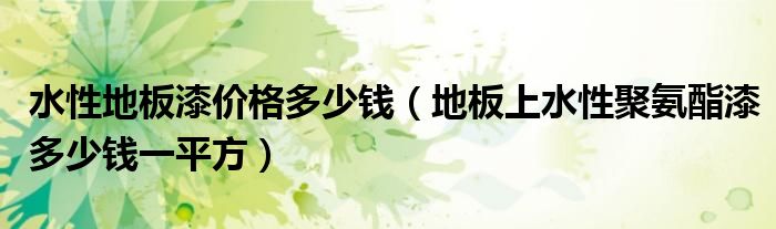 水性地板漆价格多少钱(地板上水性聚氨酯漆多少钱一平方)