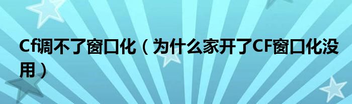 Cf调不了窗口化(为什么家开了CF窗口化没用)