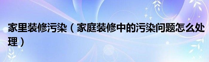 家里装修污染(家庭装修中的污染问题怎么处理)