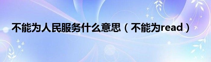 大家好,麟非来为大家解答以上问题,不能为人民服务什么意思,不能为read很多人还不知道,现在让我们一起来看看吧!