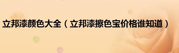 导读 大家好,精选小编来为大家解答以上的问题。立邦漆颜色大全,立邦漆擦色宝价格谁知道很多人还不知道,现在让我们一起来看看吧!1、1 立邦记