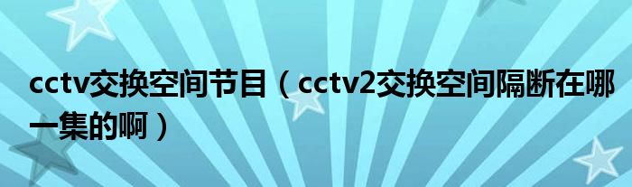 cctv交换空间节目(cctv2交换空间隔断在哪一集的啊)