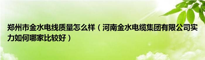郑州市金水电线质量怎么样(河南金水电缆集团有限公司实力如何哪家比较好)