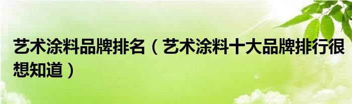 导读 大家好,精选小编来为大家解答以上的问题。艺术涂料品牌排名,艺术涂料十大品牌排行很想知道很多人还不知道,现在让我们一起来看看吧!1、1