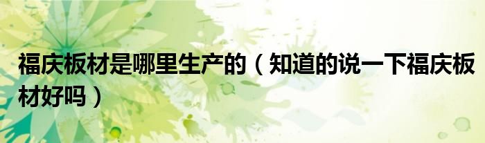 福庆板材是哪里生产的(知道的说一下福庆板材好吗)