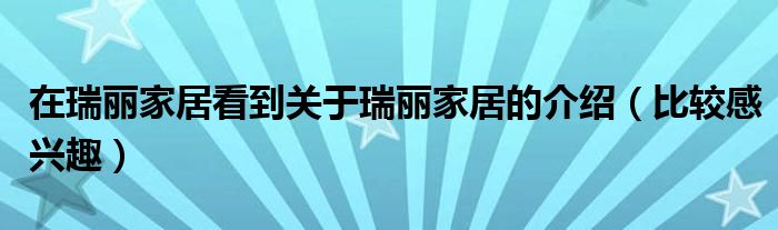 在瑞丽家居看到关于瑞丽家居的介绍(比较感兴趣)