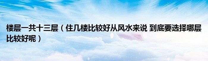 楼层一共十三层(住几楼比较好从风水来说 到底要选择哪层比较好呢)