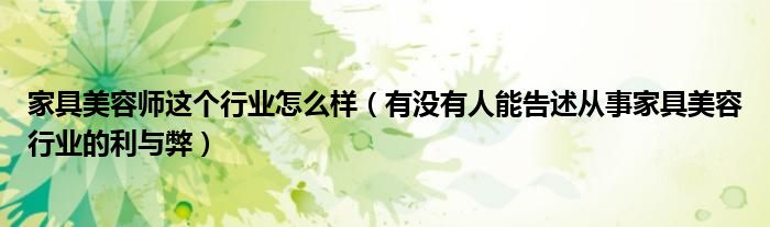 家具美容师这个行业怎么样(有没有人能告述从事家具美容行业的利与弊)