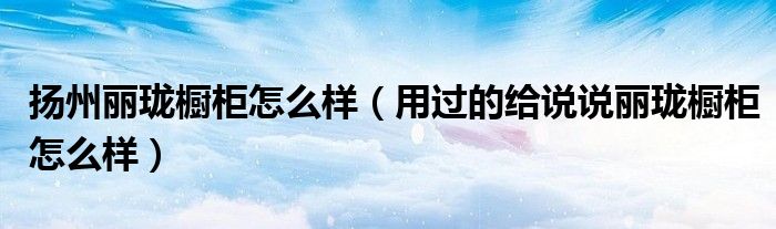 导读 大家好,精选小编来为大家解答以上的问题。扬州丽珑橱柜怎么样,用过的给说说丽珑橱柜怎么样很多人还不知道,现在让我们一起来看看吧!1、