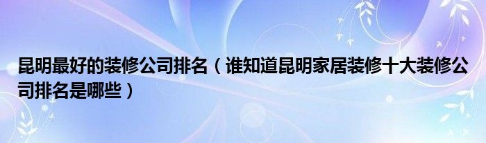 导读 大家好,精选小编来为大家解答以上的问题。昆明最好的装修公司排名,谁知道昆明家居装修十大装修公司排名是哪些很多人还不知道,现在让我们