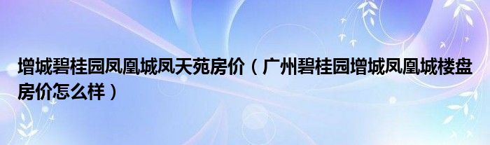 增城碧桂园凤凰城凤天苑房价(广州碧桂园增城凤凰城楼盘房价怎么样)