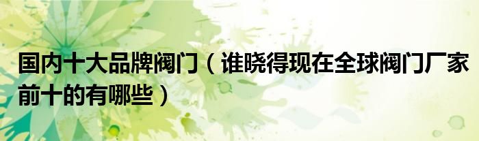 导读 大家好,精选小编来为大家解答以上的问题。国内十大品牌阀门,谁晓得现在全球阀门厂家前十的有哪些很多人还不知道,现在让我们一起来看看吧