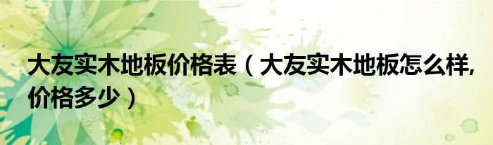 导读 大家好,精选小编来为大家解答以上的问题。大友实木地板价格表,大友实木地板怎么样,价格多少很多人还不知道,现在让我们一起来看看吧!1、