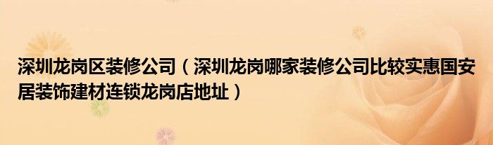 深圳龙岗区装修公司(深圳龙岗哪家装修公司比较实惠国安居装饰建材连锁龙岗店地址)