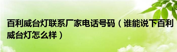 百利威台灯联系厂家电话号码(谁能说下百利威台灯怎么样)