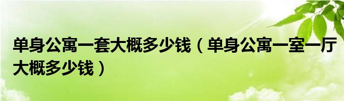 单身公寓一套大概多少钱(单身公寓一室一厅大概多少钱)