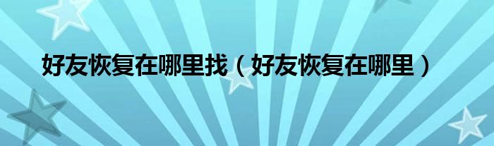 大家好,麟非来为大家解答以上问题,好友恢复在哪里找,好友恢复在哪里很多人还不知道,现在让我们一起来看看吧!