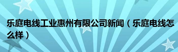 乐庭电线工业惠州有限公司新闻(乐庭电线怎么样)