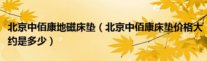 导读 大家好,精选小编来为大家解答以上的问题。北京中佰康地磁床垫,北京中佰康床垫价格大约是多少很多人还不知道,现在让我们一起来看看吧!1