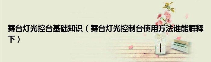 导读 大家好,精选小编来为大家解答以上的问题。舞台灯光控台基础知识,舞台灯光控制台使用方法谁能解释下很多人还不知道,现在让我们一起来看看