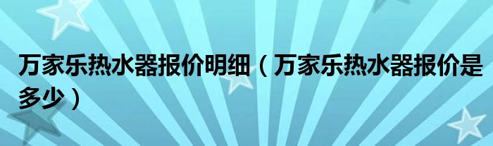 万家乐热水器报价明细(万家乐热水器报价是多少)