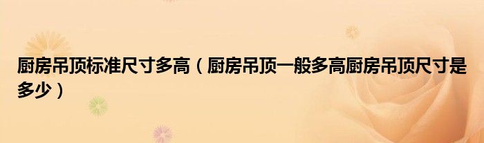 导读 大家好,精选小编来为大家解答以上的问题。厨房吊顶标准尺寸多高,厨房吊顶一般多高厨房吊顶尺寸是多少很多人还不知道,现在让我们一起来看