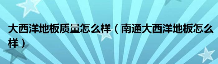大西洋地板质量怎么样(南通大西洋地板怎么样)