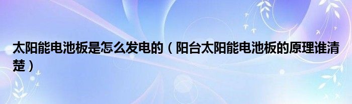 导读 大家好,精选小编来为大家解答以上的问题。太阳能电池板是怎么发电的,阳台太阳能电池板的原理谁清楚很多人还不知道,现在让我们一起来看看