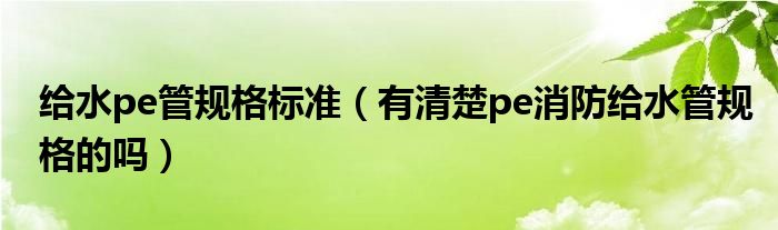 给水pe管规格标准(有清楚pe消防给水管规格的吗)