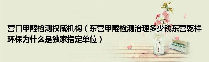 导读 大家好,精选小编来为大家解答以上的问题。营口甲醛检测权威机构,东营甲醛检测治理多少钱东营乾祥环保为什么是独家指定单位很多人还不知道