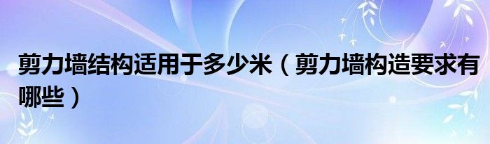 大家好,小编慧慧来为大家解答以上的问题。剪力墙结构适用于多少米,剪力墙构造要求有哪些很多人还不知道,现在让我们一起来看看吧!