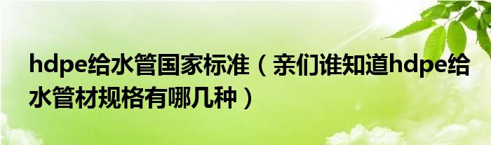 hdpe给水管国家标准(亲们谁知道hdpe给水管材规格有哪几种)