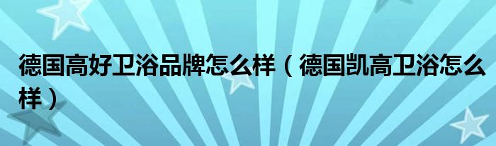 德国高好卫浴品牌怎么样(德国凯高卫浴怎么样)