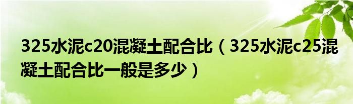 325水泥c20混凝土配合比(325水泥c25混凝土配合比一般是多少)