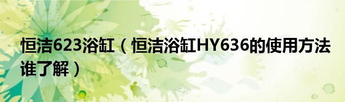 导读 大家好,精选小编来为大家解答以上的问题。恒洁623浴缸,恒洁浴缸HY636的使用方法谁了解很多人还不知道,现在让我们一起来看看吧!1、先检