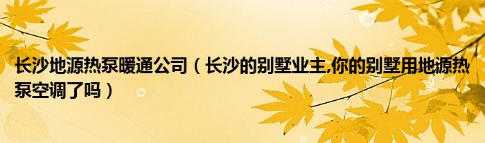 大家好,精选小编来为大家解答以上的问题。长沙地源热泵暖通公司,长沙的别墅业主,你的别墅用地源热泵空调了吗很多人还不知道,现在让我们一起来看看吧!