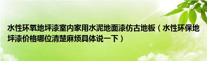 导读 大家好,精选小编来为大家解答以上的问题。水性环氧地坪漆室内家用水泥地面漆仿古地板,水性环保地坪漆价格哪位清楚麻烦具体说一下很多人还