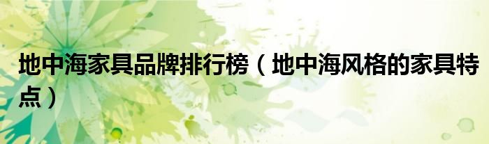 导读 大家好,小编慧慧来为大家解答以上的问题。地中海家具品牌排行榜,地中海风格的家具特点很多人还不知道,现在让我们一起来看看吧!1、地中