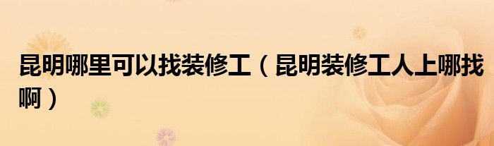 导读 大家好,精选小编来为大家解答以上的问题。昆明哪里可以找装修工,昆明装修工人上哪找啊很多人还不知道,现在让我们一起来看看吧!1、昆明