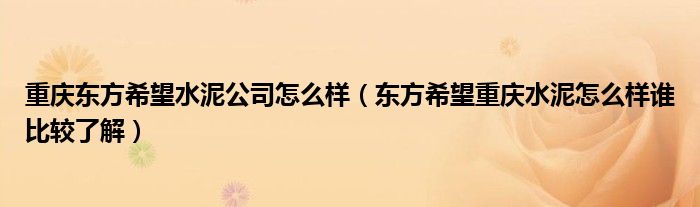 重庆东方希望水泥公司怎么样(东方希望重庆水泥怎么样谁比较了解)