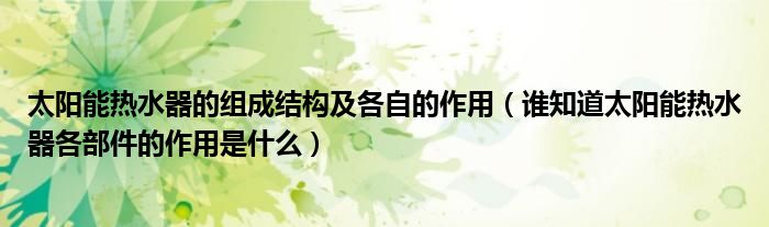 太阳能热水器的组成结构及各自的作用(谁知道太阳能热水器各部件的作用是什么)