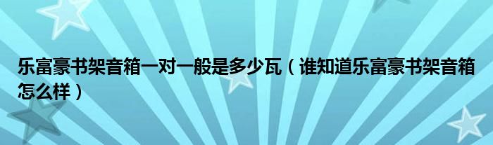 乐富豪书架音箱一对一般是多少瓦(谁知道乐富豪书架音箱怎么样)