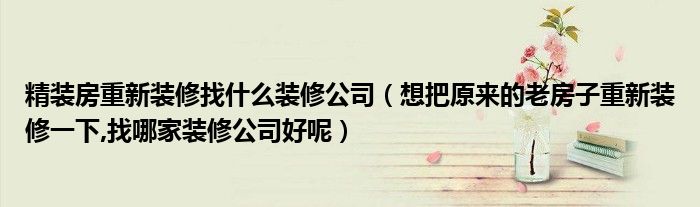 精装房重新装修找什么装修公司(想把原来的老房子重新装修一下,找哪家装修公司好呢)