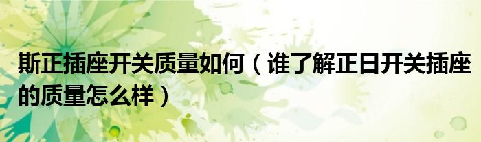 斯正插座开关质量如何(谁了解正日开关插座的质量怎么样)